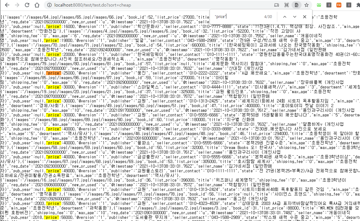 price가 싼 순으로 정렬이 된 것을 확인 할 수 있습니다.