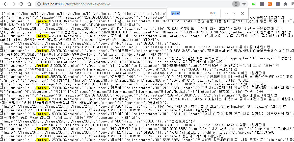 "expensive" 일때는 가격(price)이라는 필드 내림차순으로 정렬합니다. 가격이 비싼 순으로 정렬됩니다.