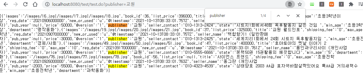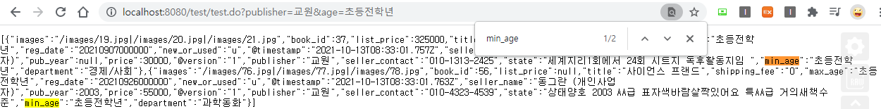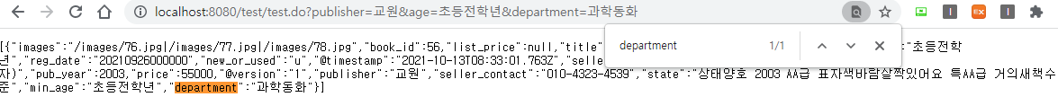 지난번에 다뤘던 sort 파라미터 뿐만 아니라 department(분야), publisher(출판사), age(적정 연령)에 대한 파라미터를 받았습니다. 각 파라미터들을 메서드에 전달합니다.