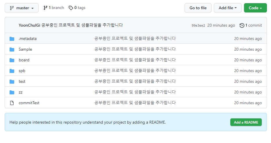 이 파일을 remote repository까지 commit 후 push할 것입니다.