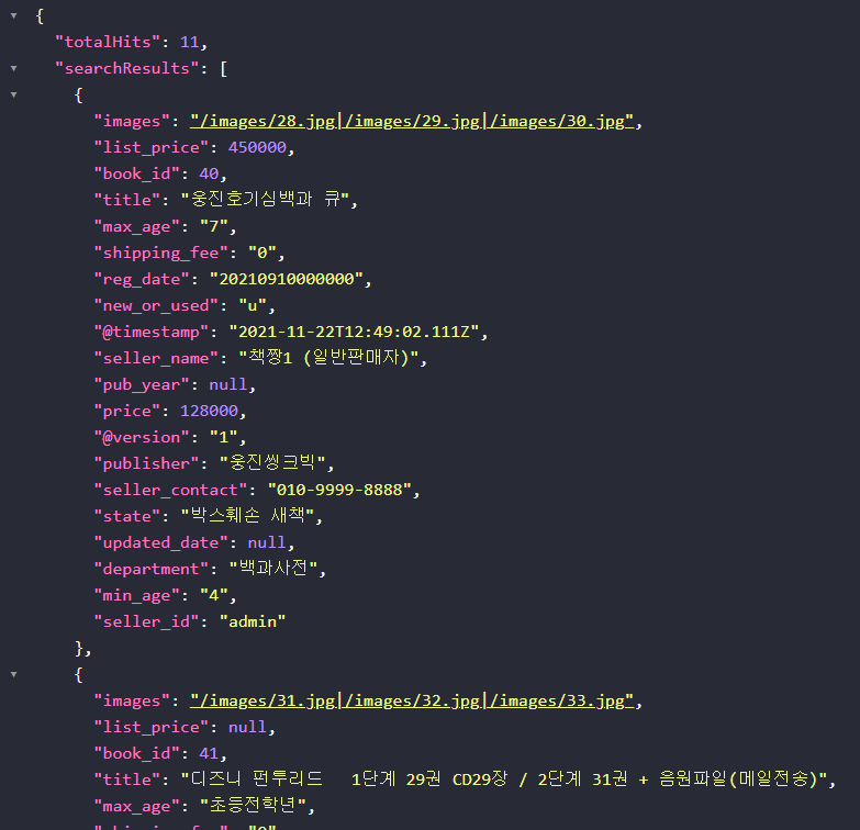예상한 대로 book_id가 40~50까지 총 11건의 결과가 도출되었습니다.