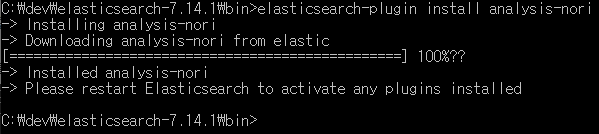 C:\dev\elasticsearch-7.14.1\bin> elasticsearch-plugin install analysis-nori