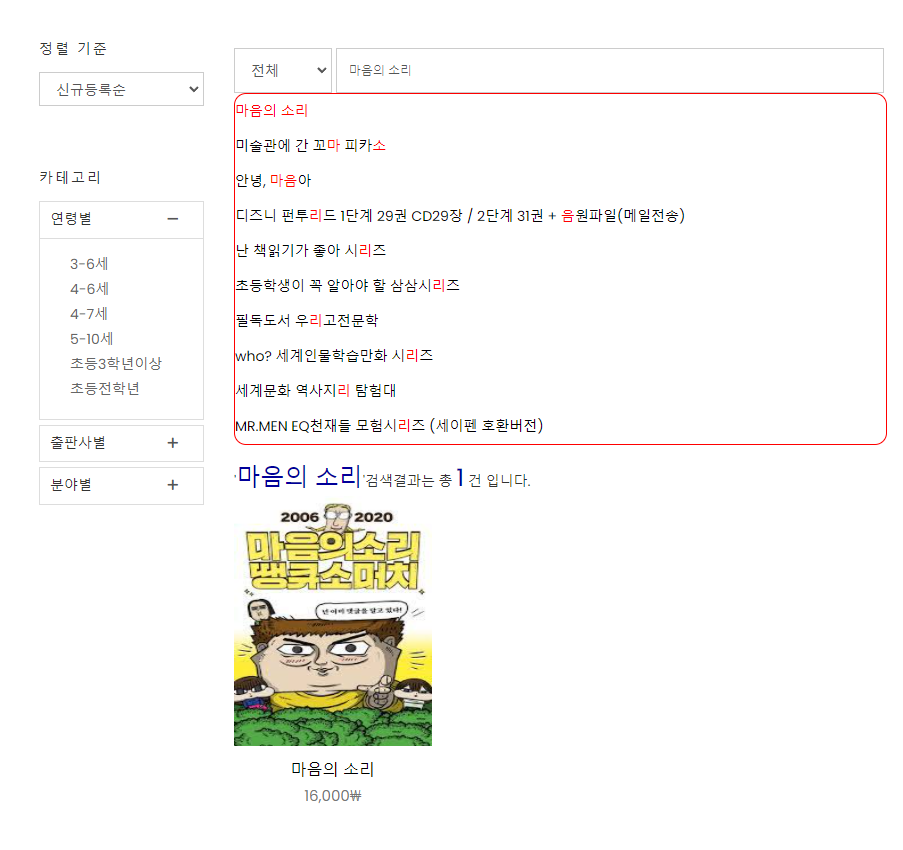 로그인 후 "마음의 소리"라는 검색어로 검색하고 로그가 잘 쌓이는지 테스트해보겠습니다.