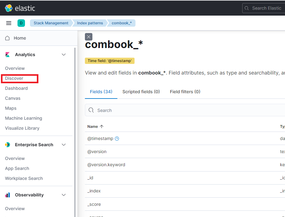 이제 Index Pattern 이 생성되었습니다.