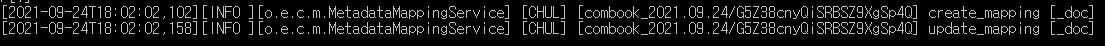 정상적으로 수집이 완료되면 elasticsearch cmd에 찍히는 로그로 확인할 수 있습니다.