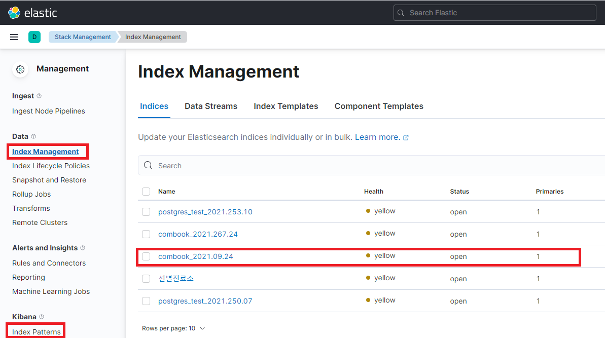 - index: 수집된 데이터가 사용될 인덱스명을 기입합니다. 저는 combook_오늘날짜가 오도록 설정했습니다.